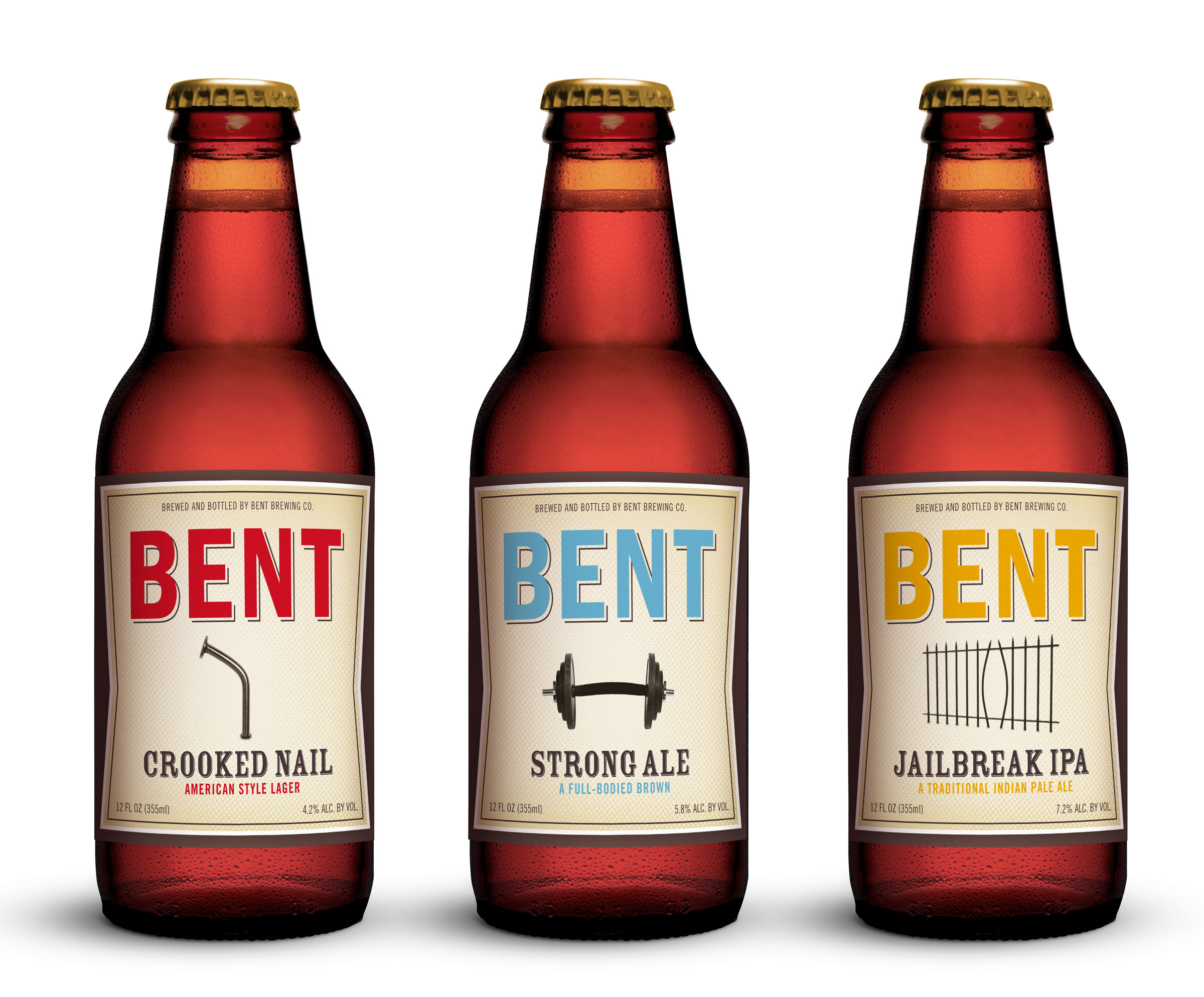 Bent Brewing Company, a newcomer to the craft brew market, needed a look that would stand out on the shelves. Altitude conducted hours and hours of very enjoyable research before leveraging common items such as a nail and a barbell to communicate the Bent brand.